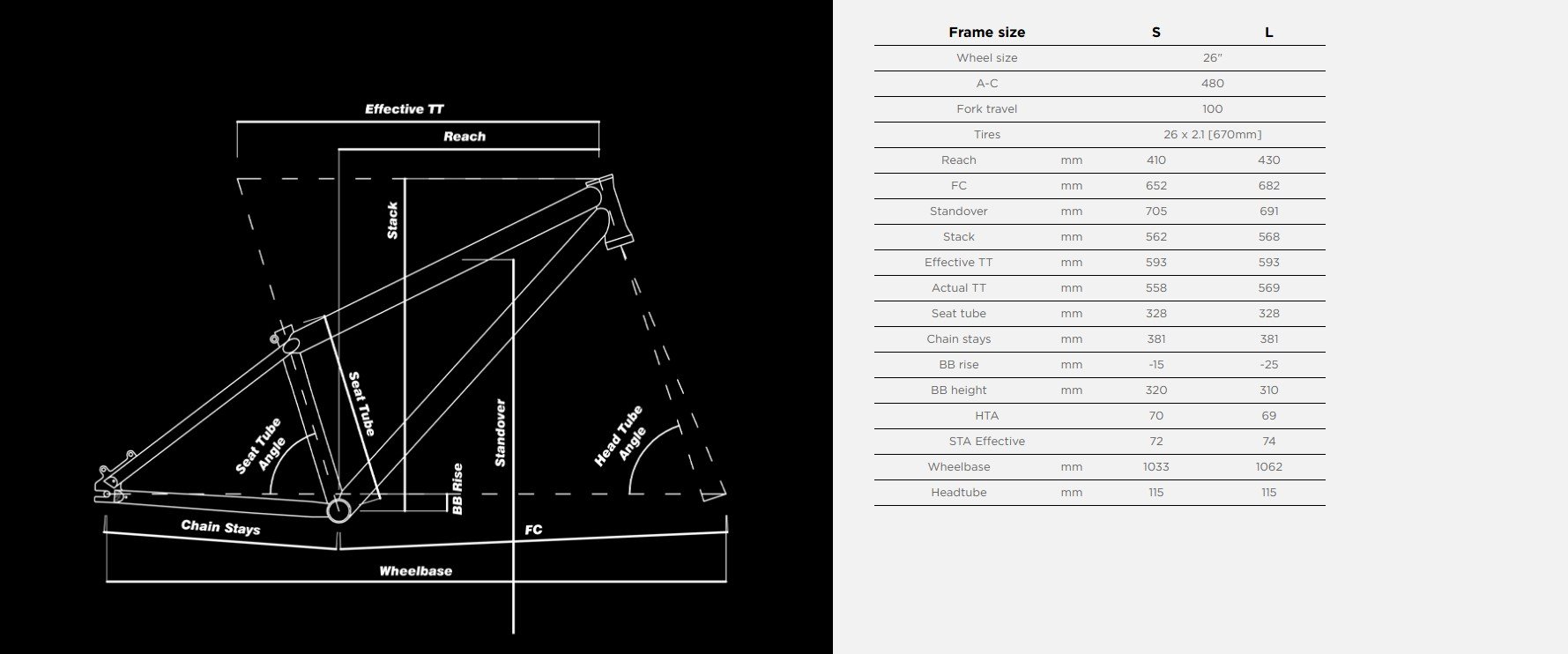 Ayrıca 1° daha yatık (slacker) headtube açısı ve 2° daha dik seat tube açısına sahiptir.